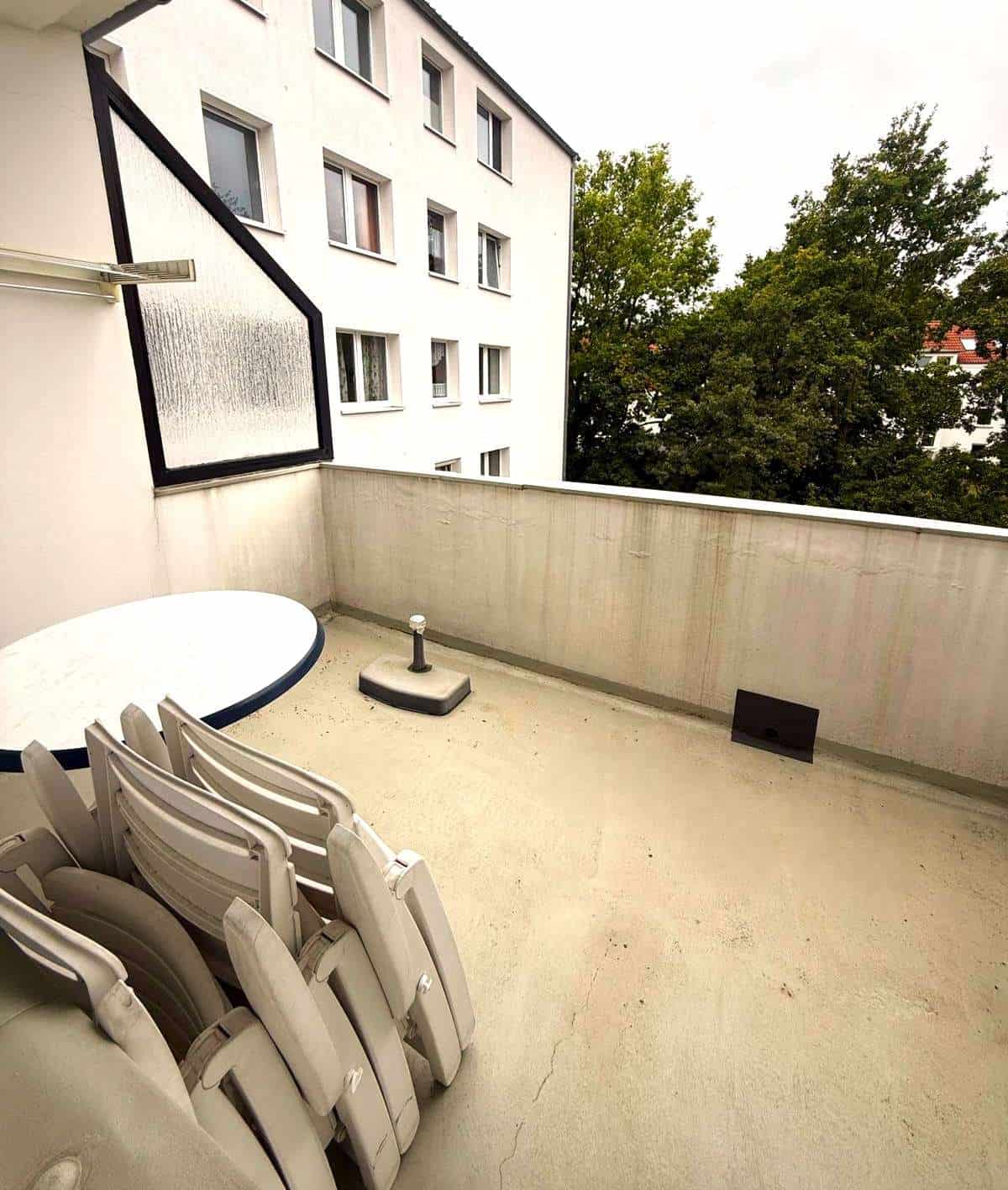 Besonders hervorzuheben ist der zum Hinterhof ausgerichtete Balkon, der einen angenehmen Rückzugsort vom Alltag bietet. Der helle, gut geschnittene Wohnbereich mit direktem Zugang zum Balkon sorgt für ein freundliches Wohnambiente.